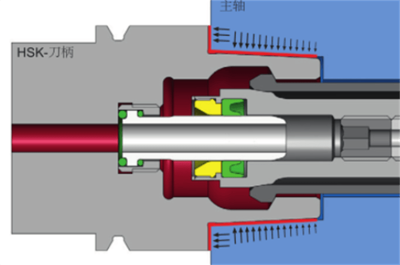 The HSK taper (Hollow Shank Taper, from the German "Hohlschaftkegel") is classified as a "double contact" system. This means it maintains contact both at the spindle taper and the flange on the spindle surface, ensuring a secure connection in both axial and radial directions. This design provides resistance to axial movement and prevents lateral shifting of the tool, making it ideal for high-speed operations.