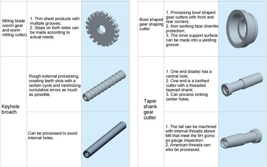 1. Ultra fine grain alloy, with good edge sharpness and wear resistance. Application: Can be used to process gear products above HRC60.